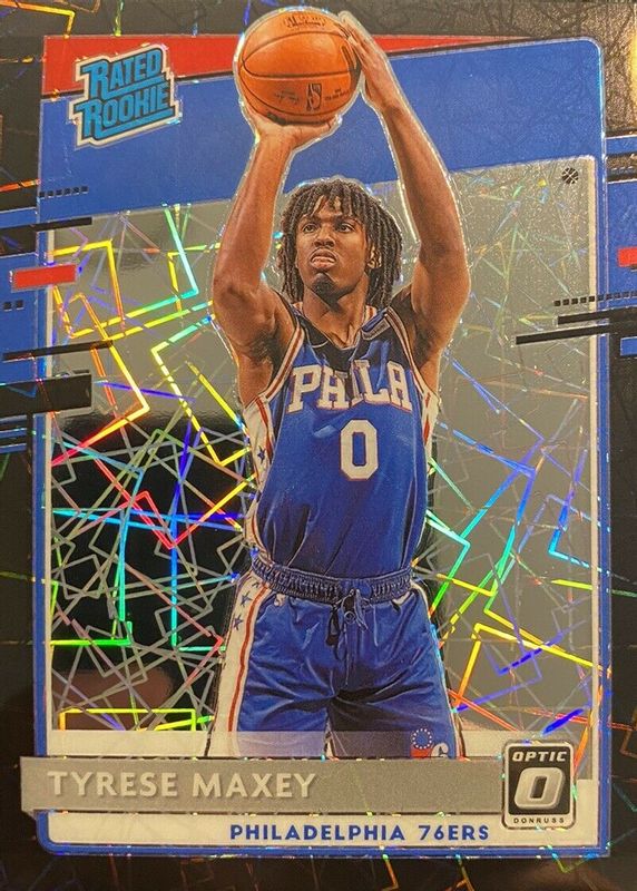 This card is 1 of 82 Tyrese Maxey's card variations in the 2020 Optic set being tracked by Sports Card Investor, including Base, Blue Pulsar, Blue Velocity, Checkerboard, and Choice.