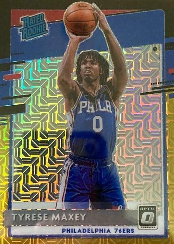 The Tyrese Maxey 2020 Optic #171 Choice Black & Gold /8 Rookie card in Raw condition has not changed in price in the last 30 days and was last sold for $1,250.00 .