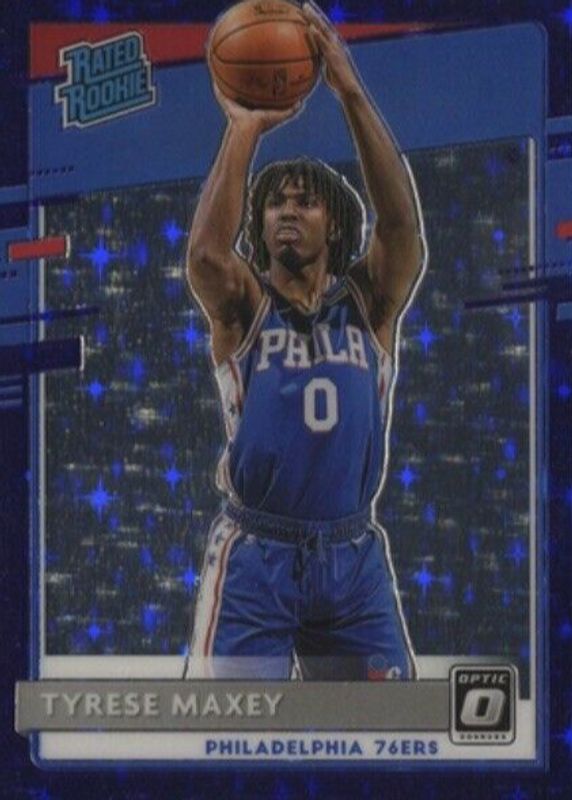 This card is 1 of 82 Tyrese Maxey's card variations in the 2020 Optic set being tracked by Sports Card Investor, including Base, Blue Pulsar, Blue Velocity, Checkerboard, and Choice.