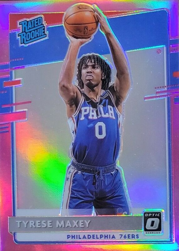 2020-21 Panini Donruss Optic Tyrese Maxey Rated Rookie Pink Prizm RC #21/25