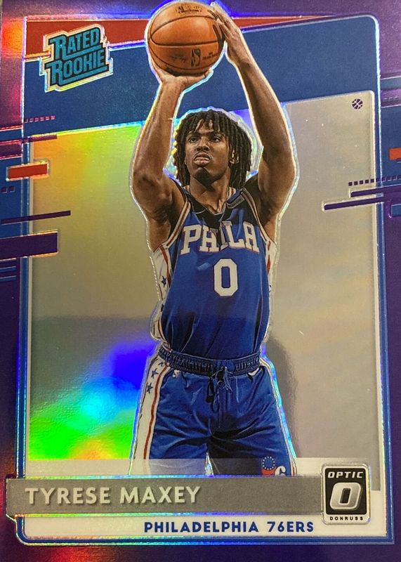 The Tyrese Maxey 2020 Optic #171 Purple Rookie card in Raw condition has moved down -$2.17 (-20.7%) in the last 30 days and was last sold for $8.33 .