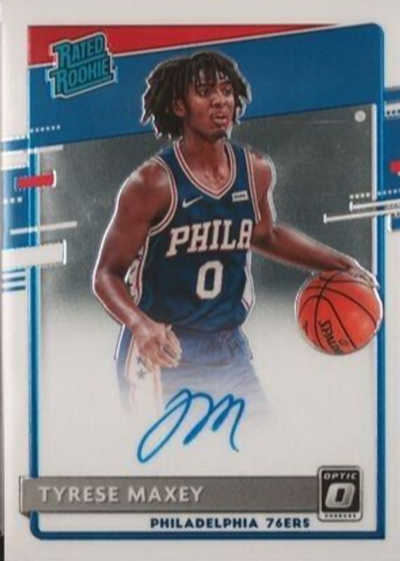 The Tyrese Maxey 2020 Optic #171 Rated Rookie Signatures card in Raw condition has moved up $65.50 (+60.6%) in the last 30 days and was last sold for $173.50 .