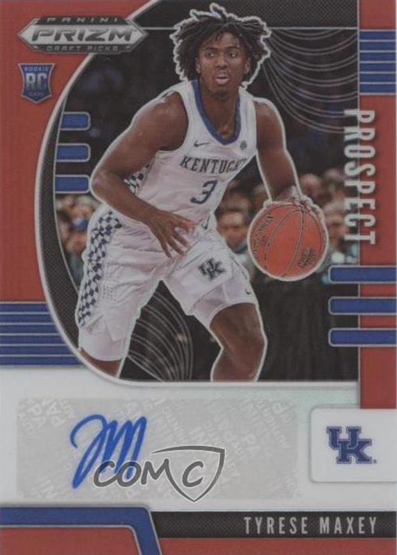 The Tyrese Maxey 2020 Prizm Draft Picks #PA-TM Prospect Autographs - Red /199 Rookie card in Raw condition has not changed in price in the last 30 days and was last sold for $79.99 .