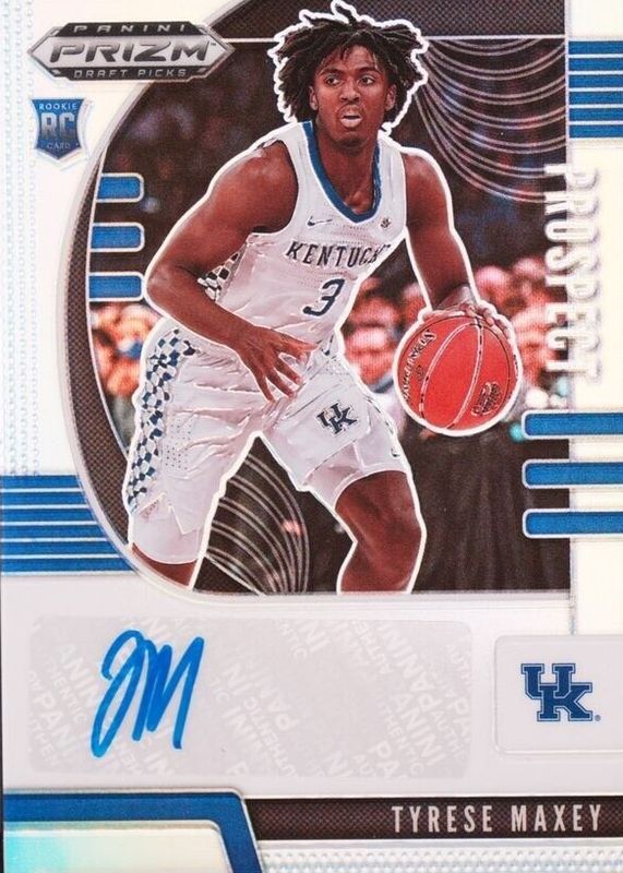 The Tyrese Maxey 2020 Prizm Draft Picks #PA-TM Prospect Autographs - Silver Rookie card in Raw condition has not changed in price in the last 30 days and was last sold for $56.00 .