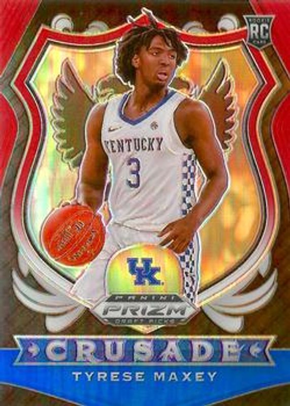 The Tyrese Maxey 2020 Prizm Draft Picks #94 Red White Blue Rookie card is 1 of 122 Tyrese Maxey's card variations in the 2020 Prizm Draft Picks set being tracked by Sports Card Investor, including #94 Base, #54 Base, #14 Base, #54 Choice Blue Yellow Green, and #14 Choice Blue Yellow Green.