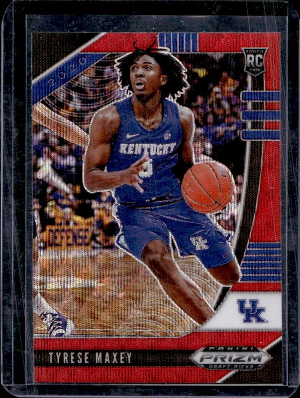 The Tyrese Maxey 2020 Prizm Draft Picks #54 Ruby Wave Rookie card is 1 of 122 Tyrese Maxey's card variations in the 2020 Prizm Draft Picks set being tracked by Sports Card Investor, including #94 Base, #54 Base, #14 Base, #54 Choice Blue Yellow Green, and #14 Choice Blue Yellow Green.
