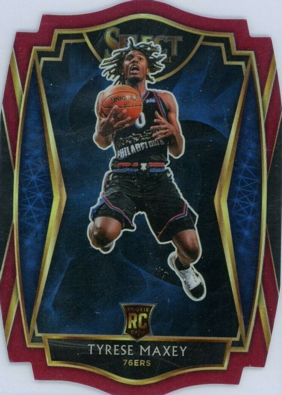 2020-21 Select Tyrese Maxey Rookie Premier Maroon Prizm Die-Cut /175 RC 76ers