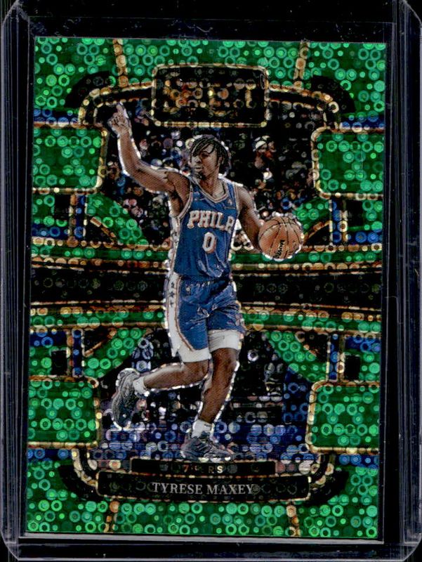 The Tyrese Maxey 2023 Select #44 Concourse Green Disco /5 card is 1 of 219 Tyrese Maxey's card variations in the 2023 Select set being tracked by Sports Card Investor, including Concourse, Courtside, Mezzanine, Premier Level, and Concourse Blue Cracked Ice.