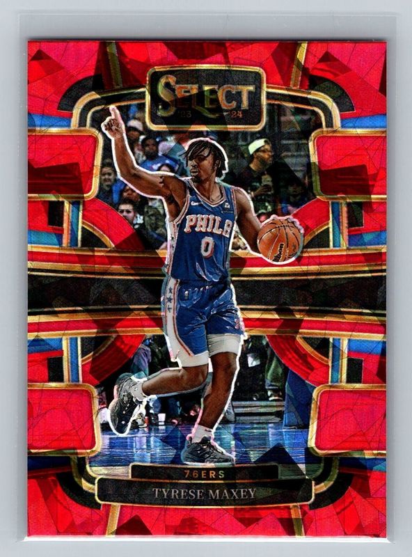The Tyrese Maxey 2023 Select #44 Concourse Red Cracked Ice card is 1 of 219 Tyrese Maxey's card variations in the 2023 Select set being tracked by Sports Card Investor, including Concourse, Courtside, Mezzanine, Premier Level, and Concourse Blue Cracked Ice.