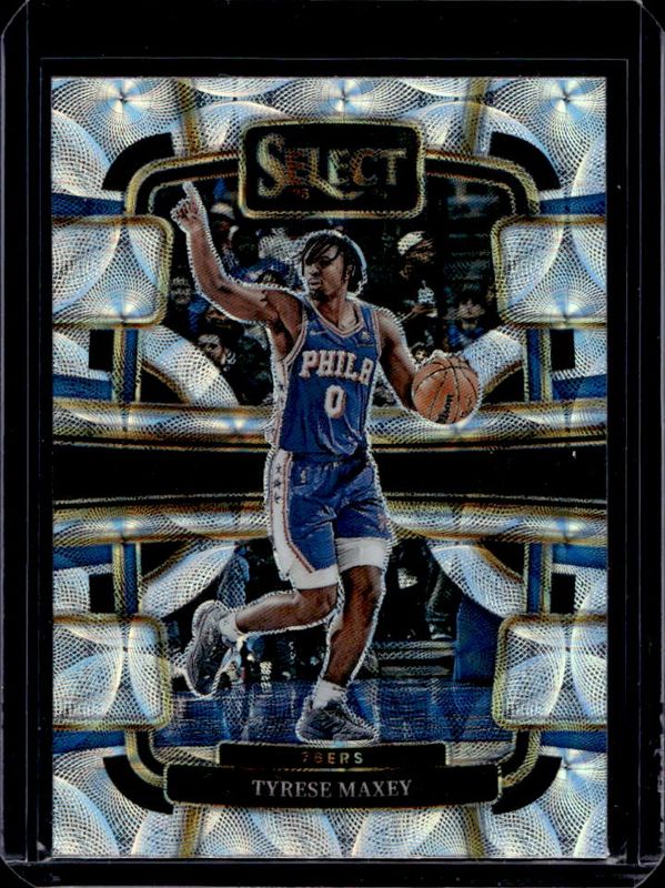 The Tyrese Maxey 2023 Select #44 Concourse Scope card is 1 of 219 Tyrese Maxey's card variations in the 2023 Select set being tracked by Sports Card Investor, including Concourse, Courtside, Mezzanine, Premier Level, and Concourse Blue Cracked Ice.