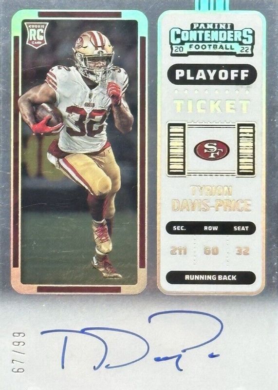 Tyrion Davis-Price 2022 Panini Contenders Playoff Ticket Rookie Auto /99 49ers
