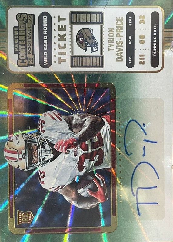 2022 Panini Contenders Tyrion Davis-Price GREEN Wild Card Rookie Ticket AUTO