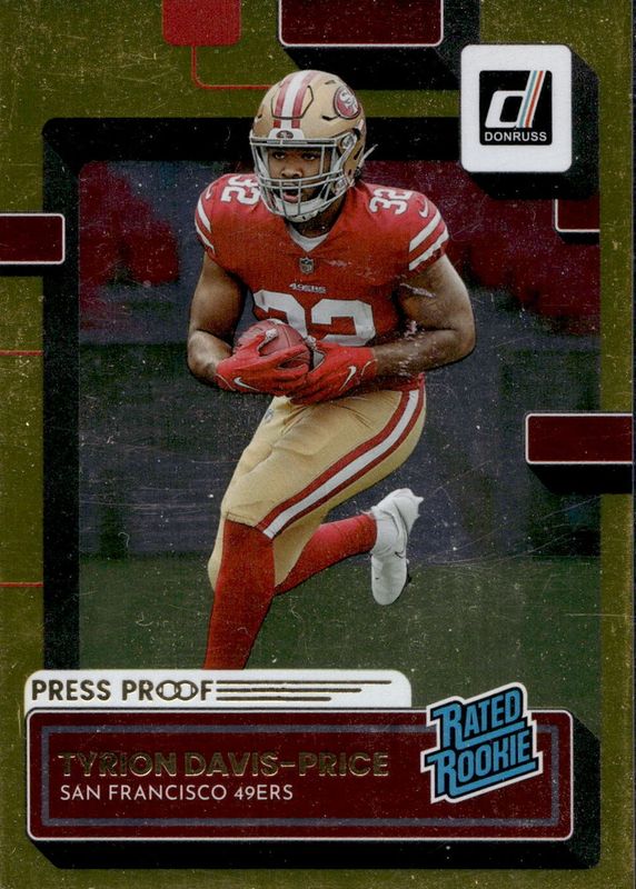This card is 1 of 10 Tyrion Davis-Price's card variations in the 2022 Donruss set being tracked by Sports Card Investor, including Press Proof Silver /100, Press Proof Silver Die-Cut /75, Press Proof Gold Die-Cut /25, Press Proof Black /10, and Press Proof Black Die-Cut /1.