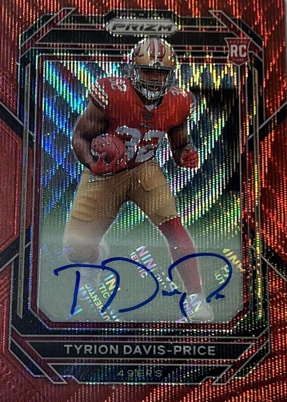 Tyrion Davis-Price 2022 Panini Prizm 320 Red Wave Prizm RC Auto 77/149 49ers