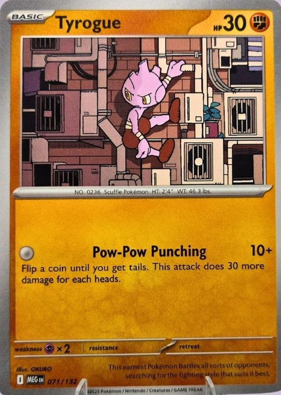 Tyrogue 2025 Mega Evolution #071/132 Base RAW TCG (NEAR MINT) Price Guide