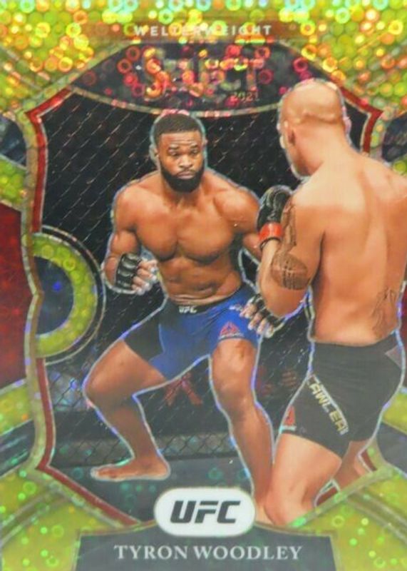 This card is 1 of 48 Tyron Woodley's card variations in the 2021 Select UFC set being tracked by Sports Card Investor, including Concourse Disco, Concourse Scope, Concourse Silver, Concourse Tri-Color, and Octagonside Disco.