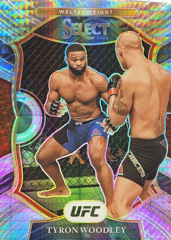 This card is 1 of 48 Tyron Woodley's card variations in the 2021 Select UFC set being tracked by Sports Card Investor, including Concourse Disco, Concourse Scope, Concourse Silver, Concourse Tri-Color, and Octagonside Disco.