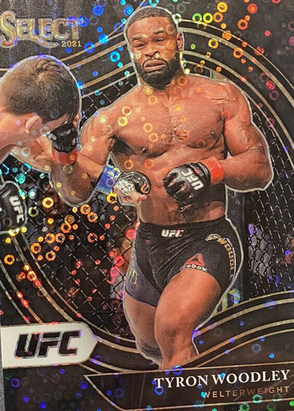 This card is 1 of 48 Tyron Woodley's card variations in the 2021 Select UFC set being tracked by Sports Card Investor, including Concourse Disco, Concourse Scope, Concourse Silver, Concourse Tri-Color, and Octagonside Disco.