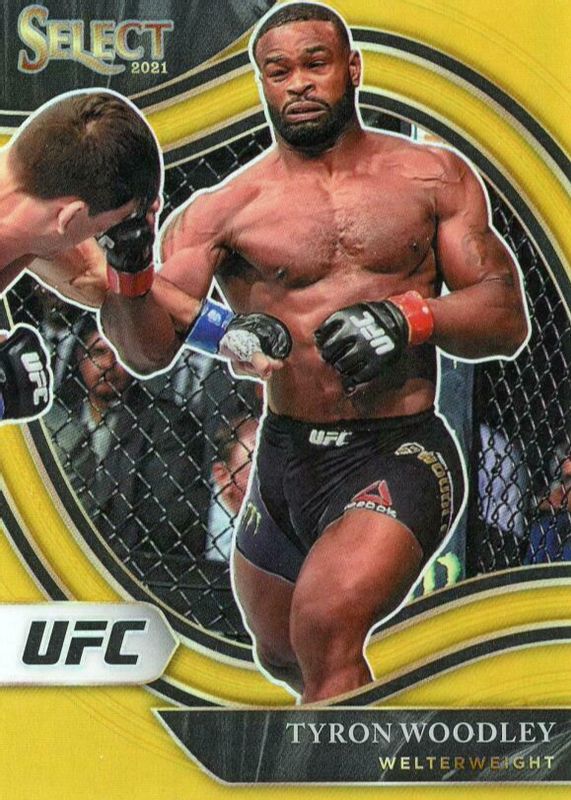 This card is 1 of 48 Tyron Woodley's card variations in the 2021 Select UFC set being tracked by Sports Card Investor, including Concourse Disco, Concourse Scope, Concourse Silver, Concourse Tri-Color, and Octagonside Disco.