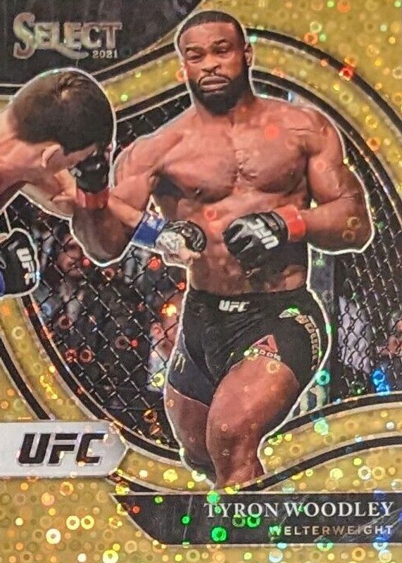 This card is 1 of 48 Tyron Woodley's card variations in the 2021 Select UFC set being tracked by Sports Card Investor, including Concourse Disco, Concourse Scope, Concourse Silver, Concourse Tri-Color, and Octagonside Disco.
