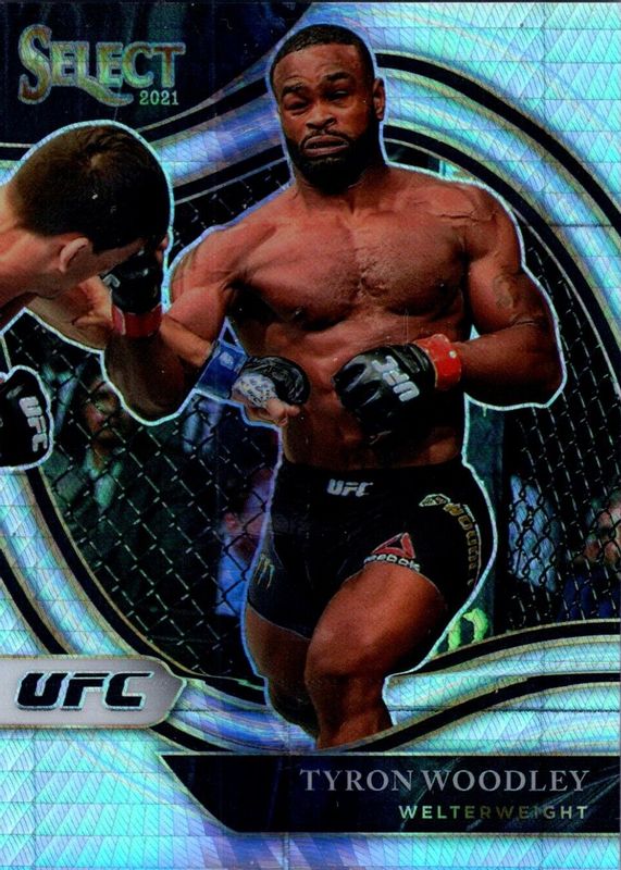 This card is 1 of 48 Tyron Woodley's card variations in the 2021 Select UFC set being tracked by Sports Card Investor, including Concourse Disco, Concourse Scope, Concourse Silver, Concourse Tri-Color, and Octagonside Disco.