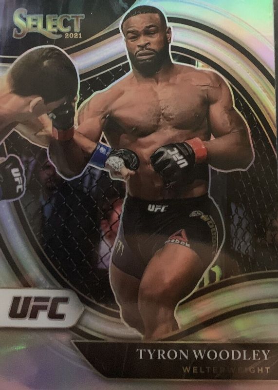 This card is 1 of 48 Tyron Woodley's card variations in the 2021 Select UFC set being tracked by Sports Card Investor, including Concourse Disco, Concourse Scope, Concourse Silver, Concourse Tri-Color, and Octagonside Disco.