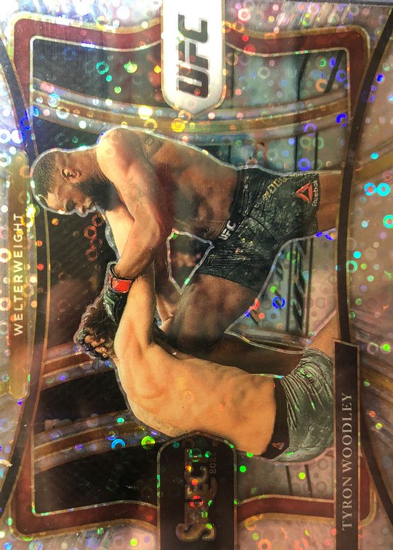 This card is 1 of 48 Tyron Woodley's card variations in the 2021 Select UFC set being tracked by Sports Card Investor, including Concourse Disco, Concourse Scope, Concourse Silver, Concourse Tri-Color, and Octagonside Disco.
