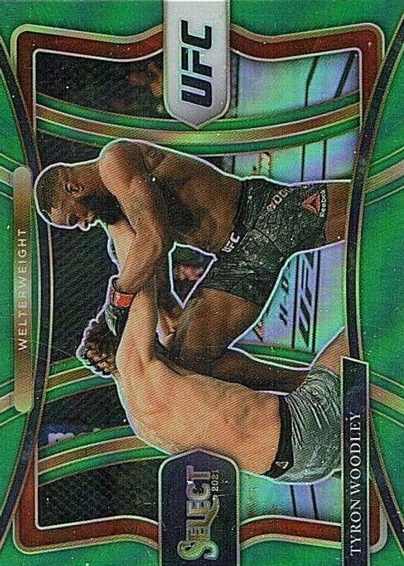 This card is 1 of 48 Tyron Woodley's card variations in the 2021 Select UFC set being tracked by Sports Card Investor, including Concourse Disco, Concourse Scope, Concourse Silver, Concourse Tri-Color, and Octagonside Disco.