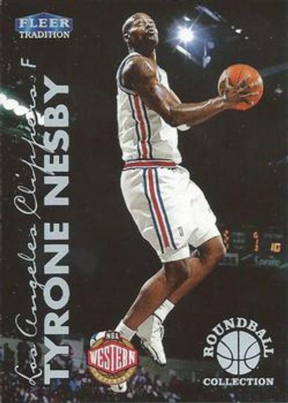 The Tyrone Nesby 1999 Fleer Tradition #79RB Roundball Collection Rookie card is 1 of 3 Tyrone Nesby's card variations in the 1999 Fleer Tradition set being tracked by Sports Card Investor, including Base, and Supreme Court Collection /20.