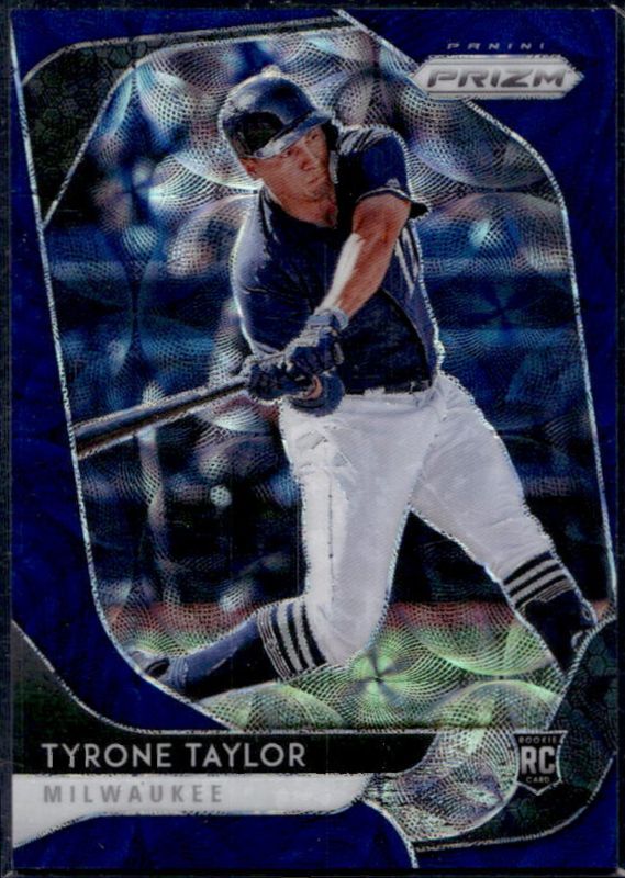 The Tyrone Taylor 2020 Prizm #69 Navy Blue Kaleidoscope /35 Rookie card is 1 of 62 Tyrone Taylor's card variations in the 2020 Prizm set being tracked by Sports Card Investor, including Base, Blue, Carolina Blue, Cosmic Haze, and Green.