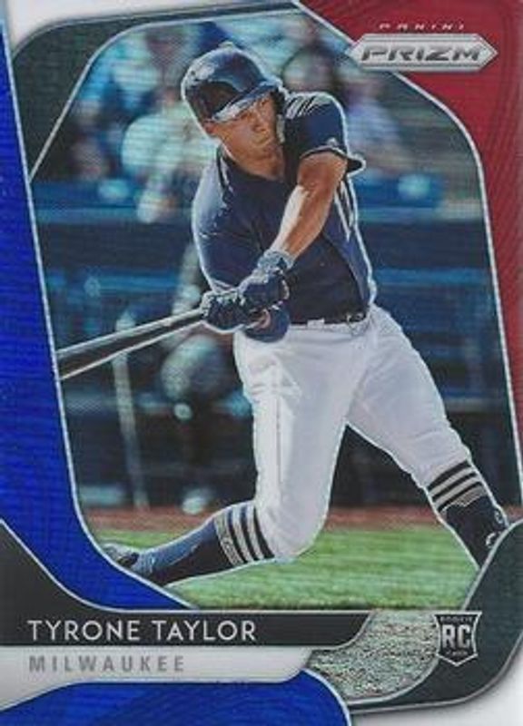 The Tyrone Taylor 2020 Prizm #69 Red White Blue Rookie card is 1 of 62 Tyrone Taylor's card variations in the 2020 Prizm set being tracked by Sports Card Investor, including Base, Blue, Carolina Blue, Cosmic Haze, and Green.