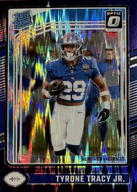The Tyrone Tracy Jr. 2024 Optic #259 Purple Shock Rookie card in Raw condition has moved up $0.62 (+62.6%) in the last 30 days and was last sold for $1.61 .