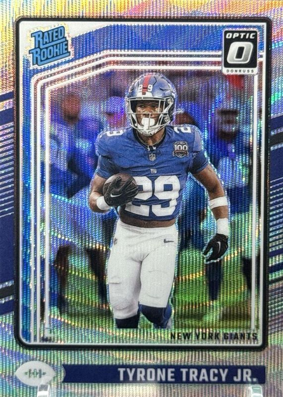 The Tyrone Tracy Jr. 2024 Optic #259 Wave /300 Rookie card in Raw condition has not changed in price in the last 30 days and was last sold for $5.99 .