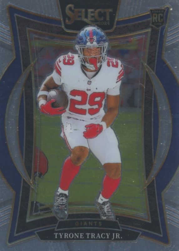 This card is 1 of 72 Tyrone Tracy Jr.'s card variations in the 2024 Select set being tracked by Sports Card Investor, including Field Level, Concourse Black & Blue Shock, Concourse Black & Gold Shock, Concourse Black & Green Shock, and Concourse Black & Orange Shock.