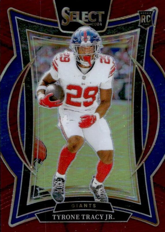 This card is 1 of 72 Tyrone Tracy Jr.'s card variations in the 2024 Select set being tracked by Sports Card Investor, including Concourse, Field Level, Concourse Black & Blue Shock, Concourse Black & Gold Shock, and Concourse Black & Green Shock.