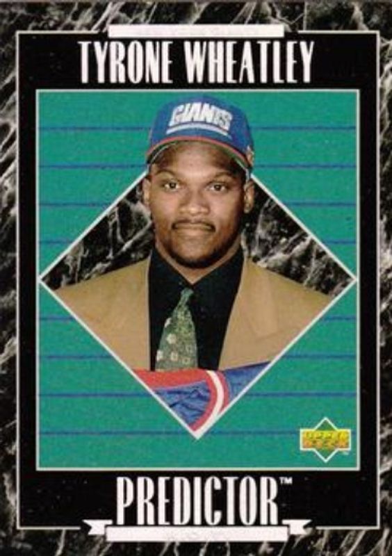 The Tyrone Wheatley 1995 Upper Deck #HP18 Predictors Exchange: Award Winners Rookie card is 1 of 5 Tyrone Wheatley's card variations in the 1995 Upper Deck set being tracked by Sports Card Investor, including Base, Electric, Electric Gold, and Predictors: Award Winners.