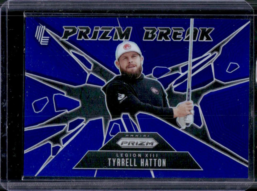 The Tyrrell Hatton 2025 Prizm LIV #7 Break - Blue /99 card is 1 of 87 Tyrrell Hatton's card variations in the 2025 Prizm LIV set being tracked by Sports Card Investor, including Base, Checkerboard, Giraffe, Orange Tiger, and Pulsar.