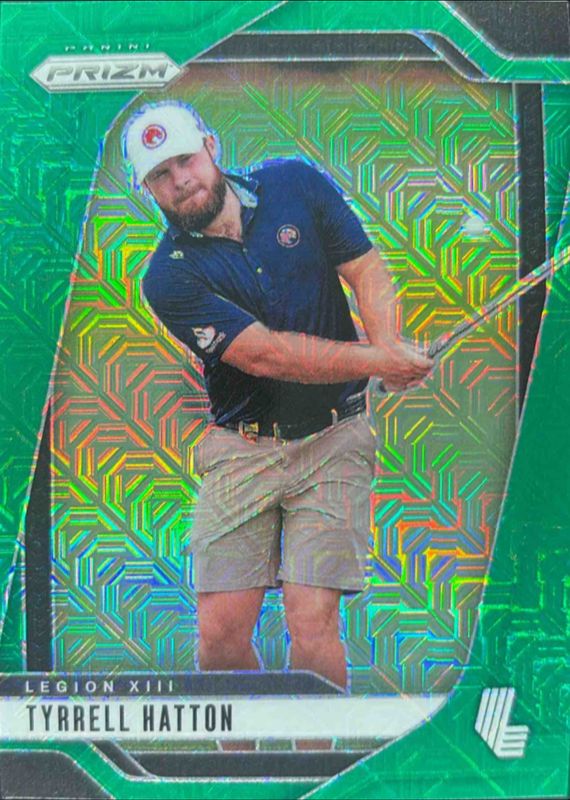 The Tyrrell Hatton 2025 Prizm LIV #48 Green Mojo /49 card is 1 of 87 Tyrrell Hatton's card variations in the 2025 Prizm LIV set being tracked by Sports Card Investor, including Base, Checkerboard, Giraffe, Orange Tiger, and Pulsar.