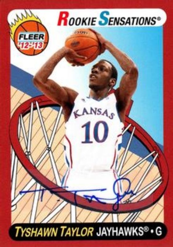 The Tyshawn Taylor 2012 Fleer Retro #67 Autographs Rookie card is 1 of 5 Tyshawn Taylor's card variations in the 2012 Fleer Retro set being tracked by Sports Card Investor, including Base, 1996-97 Lucky 13, 1996-97 Lucky 13 Autographs, and Mystique Fresh Ink.