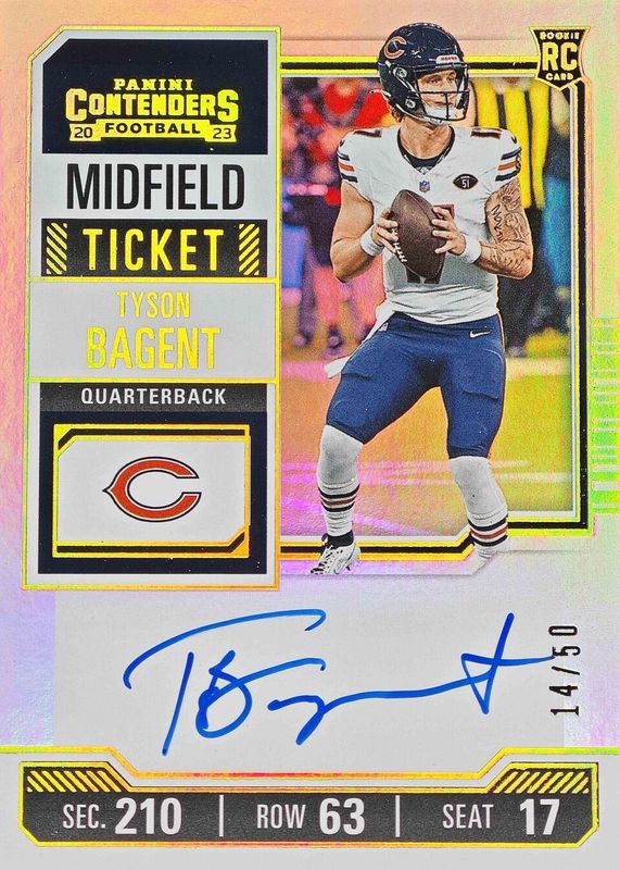 2023 Contenders Tyson Bagent MIDFIELD ticket Auto /50 ON CARD! STAR ⭐️!! INVEST!