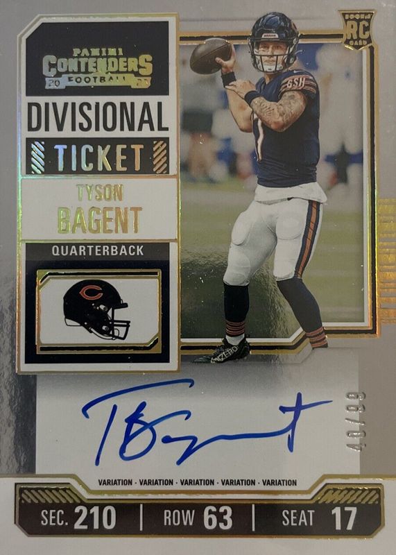2023 Panini Contenders Tyson Bagent Rookie Variation Divisional Ticket Auto #/99