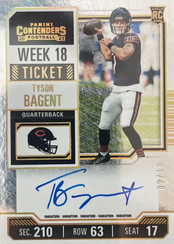 Tyson Bagent 2023 Contenders #139 Rookie Ticket Auto Variation - Week 18 /18 RAW Price Guide