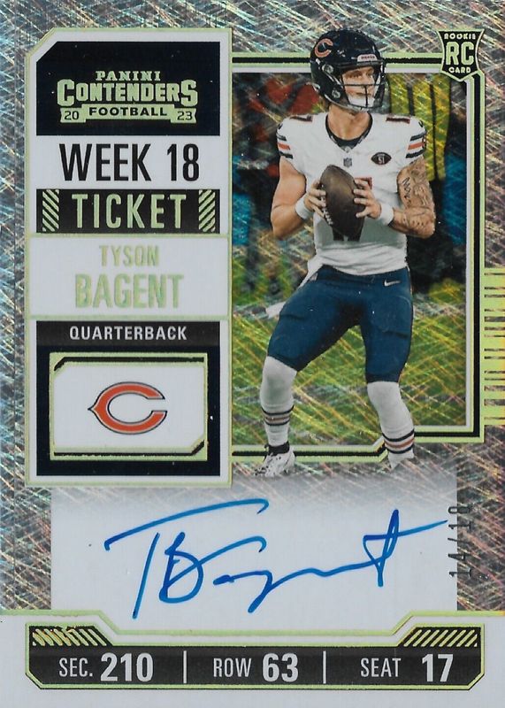 2023 Panini Contenders Tyson Bagent Rookie Auto Week 18 Ticket 15/18 ! Bears