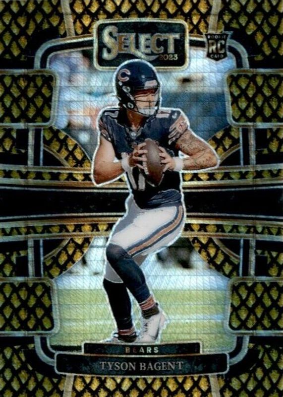 The Tyson Bagent 2023 Select #18 Concourse Gold Dragon Scale /10 Rookie card in Raw condition has not changed in price in the last 30 days and was last sold for $70.00 .