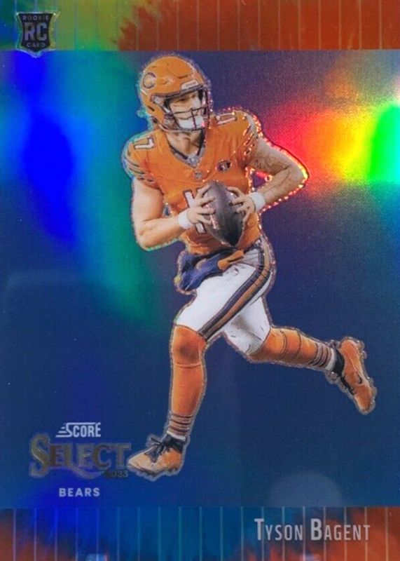 The Tyson Bagent 2023 Select #STW-TBA Score Select Throwback - Tie-Dye /25 Rookie card in Raw condition has not changed in price in the last 30 days and was last sold for $25.55 .