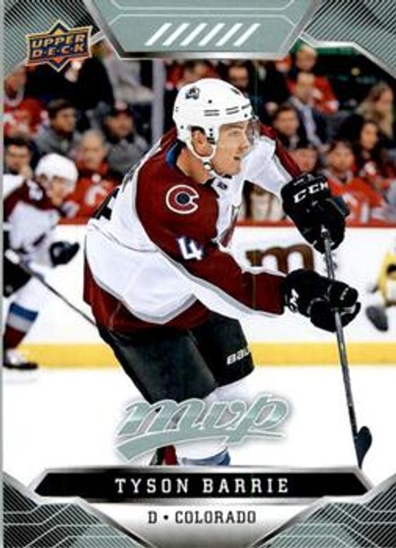 The Tyson Barrie 2019 Upper Deck MVP #97 Base card is 1 of 12 Tyson Barrie's card variations in the 2019 Upper Deck MVP set being tracked by Sports Card Investor, including Blue, Gold Script, Puzzle Backs, Silver Script, and Super Script /25.