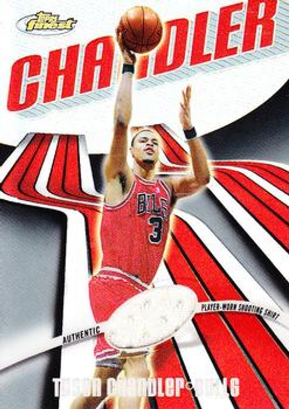 The Tyson Chandler 2003 Topps Finest #59 Refractor /250 card is 1 of 8 Tyson Chandler's card variations in the 2003 Topps Finest set being tracked by Sports Card Investor, including Base /999, Gold Refractor /25, Printing Plate Black /1, Printing Plate Cyan /1, and Printing Plate Magenta /1.