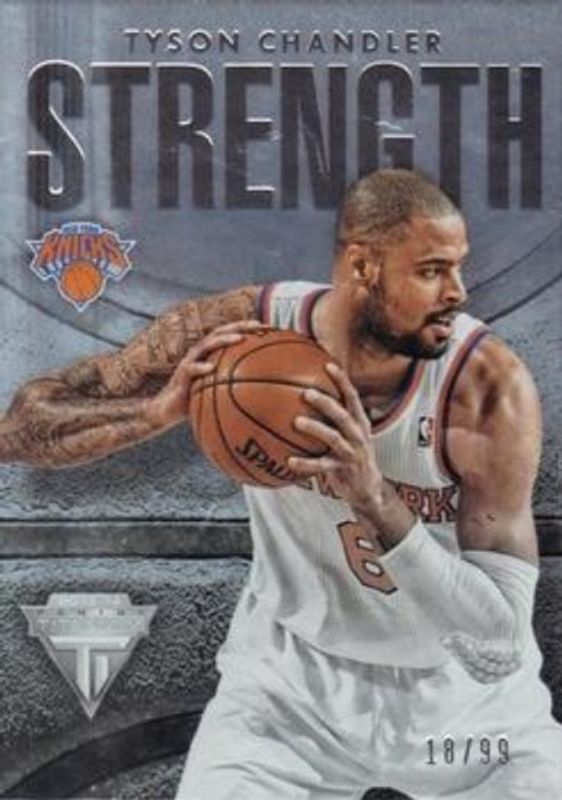 The Tyson Chandler 2013 Titanium #14 Strength /99 card is 1 of 22 Tyson Chandler's card variations in the 2013 Titanium set being tracked by Sports Card Investor, including #64 Base, #64 Retail /149, #164 Retail /149, #164 22 /22, and #64 22 /22.