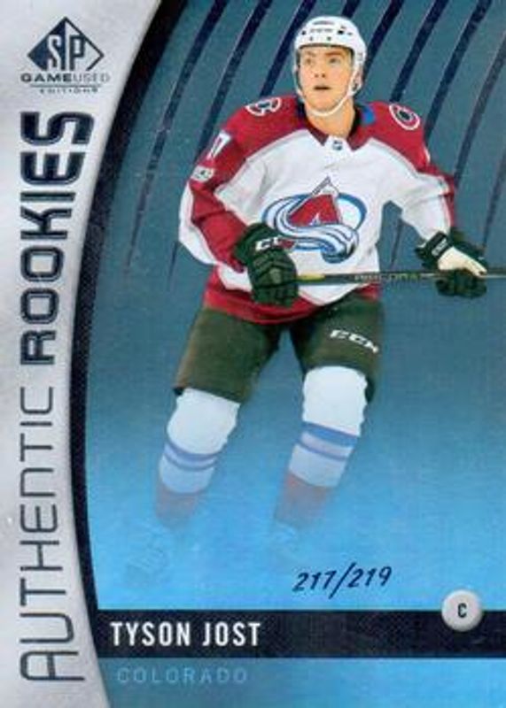 Tyson Jost 2017 SP Game Used #165 Authentic Rookies Rainbow /218 RAW Price Guide