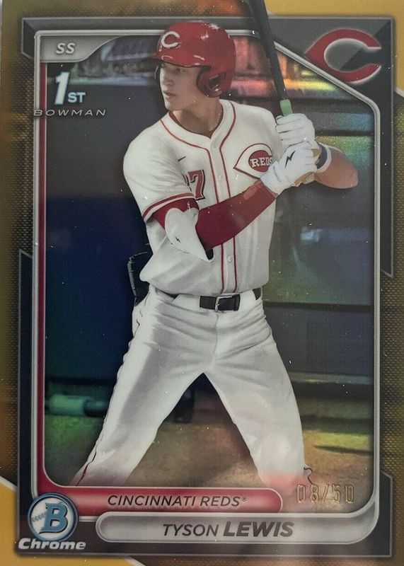 TYSON LEWIS Cincinnati Reds 2024 Bowman Draft Chrome 1st GOLD #'d /50